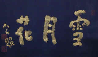 紺紙金泥・ 元東大寺長老 清水公照筆 宇津木憲一天然醗酵本藍染め紙
